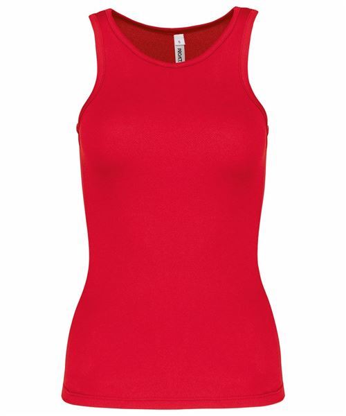 100% Polyester. Quick drying Lightweight fabric. Racer back style. Bound neck and armholes. Twin needle finishing. BSCI certified. Oeko-Tex certified.