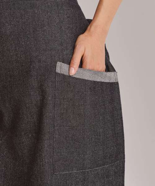 Made entirely from regenerated denim, and woven on hand looms in a low-powered carbon factory, this cotton apron has a great more sustainable story to tell! The fleck effect is testimony to the recycled denim fabrics that this apron was created from. It features two slanted side pockets with contrast trim and a knotted neckband that can be adjusted for height. Super-soft to touch, with a linen feel.