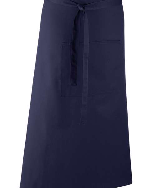 A bar apron that falls to a length of 80cm offering the wearer maximum coverage. This apron comes in 24 colours and is part of the 'Colours Collection' from Premier. To the centre of the apron is a useful centre pocket for carrying tablet devices, together with a combined pen compartment.