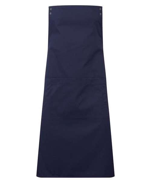 Apron body with straps sold separately for ultimate customisation (for straps, see PR191). Mix and match colours, without the need for a bespoke option. Simply choose your apron body, then select contrasting neckband and waist ties. Straps fasten securely to this apron body using strong, self-coloured, snap-action press studs. Centre pocket with combined pen pocket. Self-fabric cloth holder. Contains certified recycled polyester.