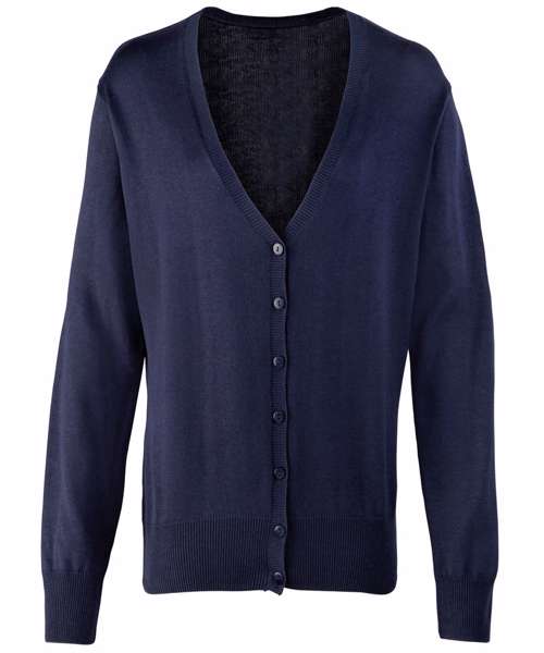 Women's long sleeve v-neck cardigan. Soft feel/cotton rich yarn. Fine gauge knit. Button fastening. Seven button fastening. Contemporary styling. Set in sleeves. 40°C domestic wash.
