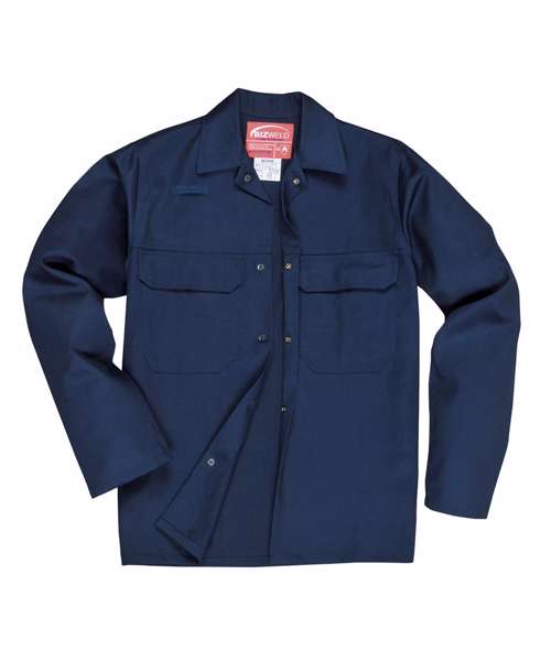 The Bizweld Jacket provides the wearer with all day protection and comfort. Features include secure stud fasteners down the front and two chest pockets with flaps. This flame resistant jacket also includes a concealed mobile phone pocket.