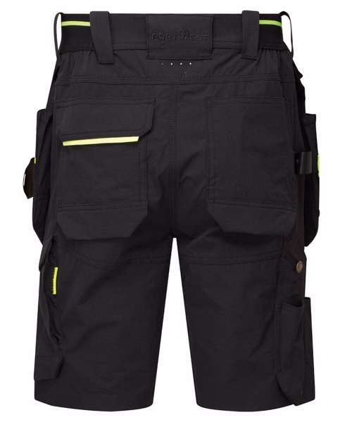 Four-way stretch nylon fabric for added durability and ease of movement. CorePro reinforced holster pockets with webbing loops for tools. Lightweight for enhanced wearer comfort. Pockets with magnetic flap closure for added security. Interchangeable holster pockets allow for customisation of placement. Handy waistband D-ring for keys or ID cards. Lasercut holes for added ventilation. Stretch crotch gusset provides maximum flexibility and reduces stress. 10 pockets for ample storage. Two side pockets. Zip-off holster pockets for added versatility. One loop for ID card, keys or tools. One D-ring for keys, tools or ID badge holder. One hammer loop. One ID card holder. Two back pockets with one open and one featuring a flap. One thigh pocket with zip closure. One rule pocket. One spanner pocket. Triple-stitched seams for extra durability. Multiple utility pockets provide ample storage. Side elastic waist for ultimate wearer comfort. Ventilation channels. ID card holder for ID card display. Pockets with magnetic flap closure for added security.