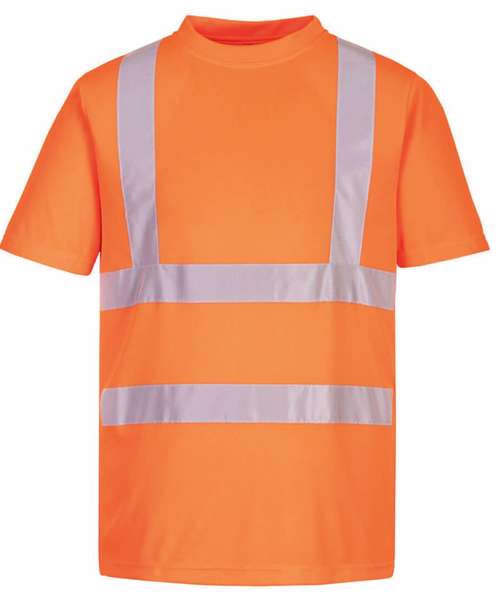 Hi-vis t-shirt made in 100% recycled polyester fabric. Lightweight, with improved slim fit and 4cm tape gap on side seams, allowing garment stretch and providing maximum comfort for the wearer. EN ISO 20471 Class 2. RIS 3279 TOM Issue 2 (Orange only). ANSI/ISEA 107 TYPE R CLASS 2.