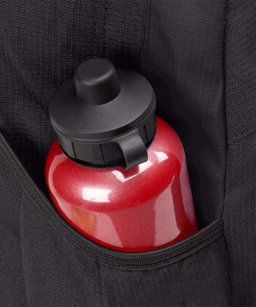 - Ergonomic padded back panelMedia pocket and headphone portWater bottle holder
