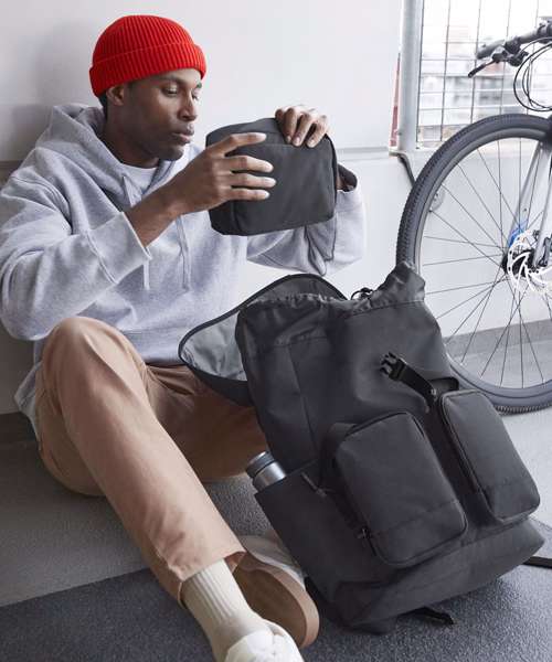 Contains 100% certified recycled polyester. Water-repellent fabric. Zipped front pocket. Internal zipped pocket. Two internal slip pockets. Internal mesh pockets. PU, self-coloured zip pulls. TearAway label for ease of rebranding.