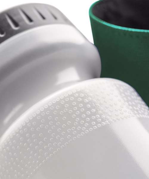 500ml Water bottle included. BPA free soft bottle. Soft pull-up drink nozzle with screw on cap. Ergonomic easy grip neck. Wide necked bottle opening for easy filling and cleaning. Belt loop and carabiner clip. Reach certified.