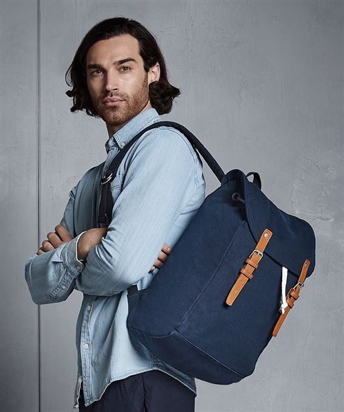 Authentic PU and metal accents. Laptop compatible up to 14". Padded laptop compartment. Heavy rope draw cord closure. Padded adjustable shoulder straps. Padded back panel. Padded base. Grab handle. BSCI certified. Reach certified.
