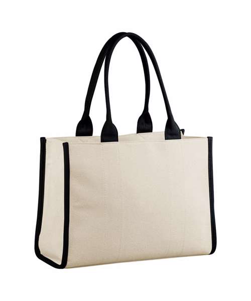 Zipped internal valuables pocket. Premium twill fabric. Structured design. Hidden lining zip for easy decoration access. Internal baseboard. Soft-touch lining. Self-fabric edge trim. High-shine gold metal trims. Self-fabric carry handles. Can be carried by hand or over the shoulder. TearAway label for ease of rebranding. Contains recycled polyester.
