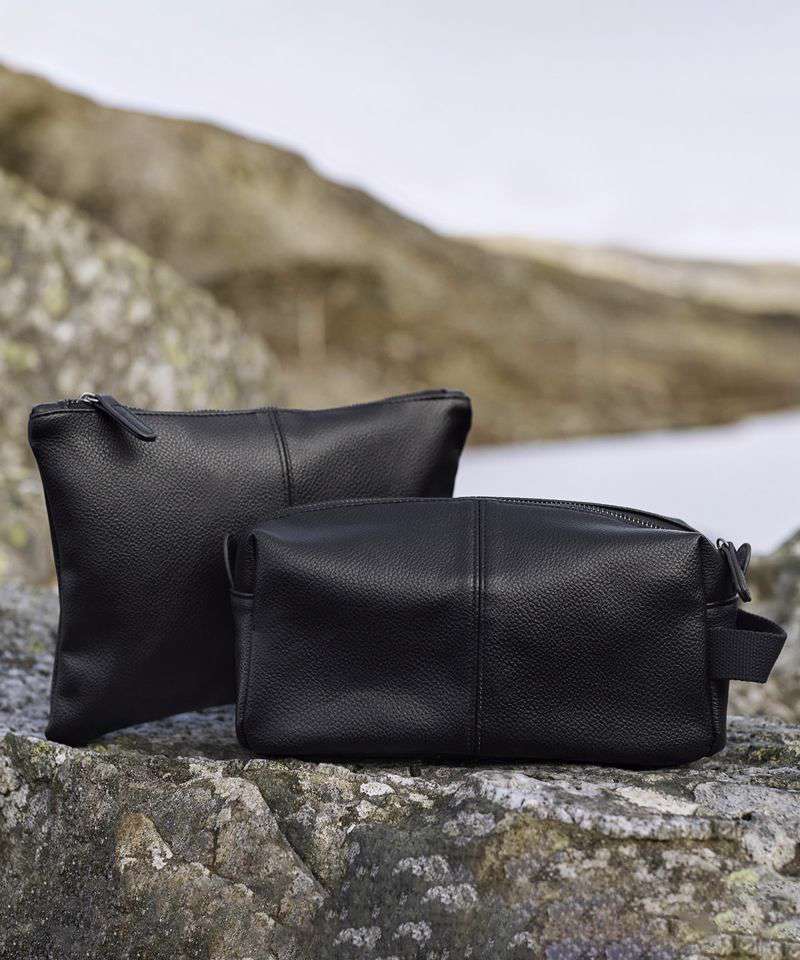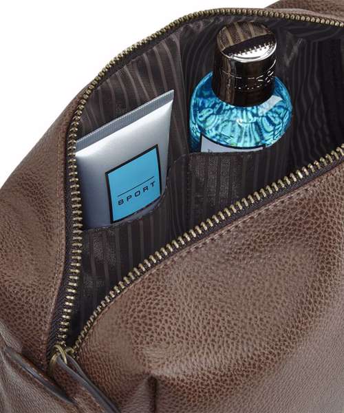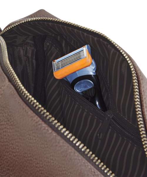 TearAway label for ease of rebranding. Wipe clean interior. Fully lined in pinstriped fabric. Vintage style metal fittings. Internal pockets.
