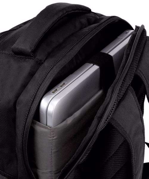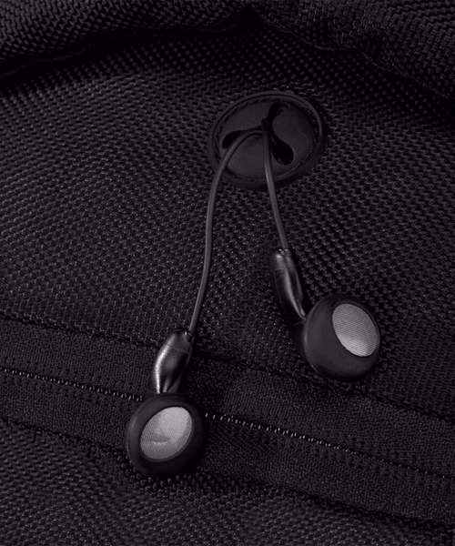 - Laptop compatible up to 15.6=Media pocket and headphone port=Front pocket organiser section