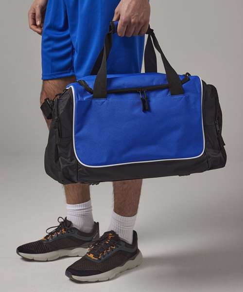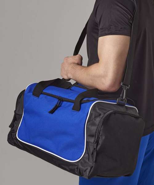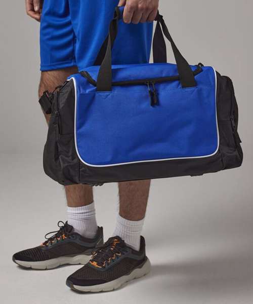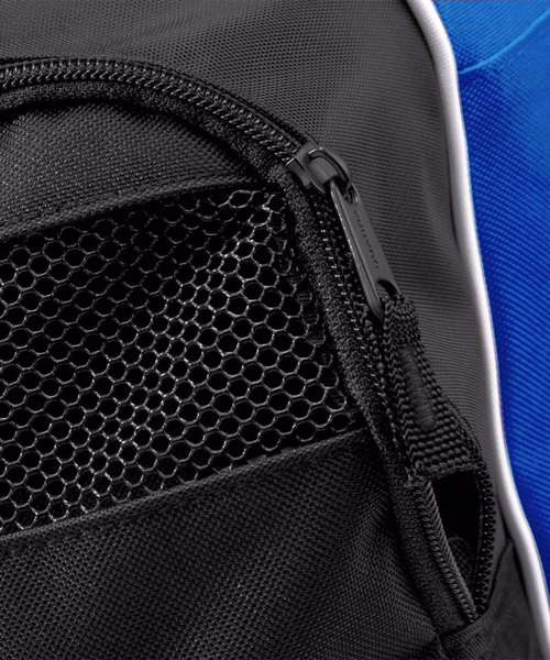 Compact size to fit most lockers, with detachable adjustable shoulder strap and pad. End pockets, one with mesh ventilation panel. Protective base feet. Internal baseboard. Padded hand grip.