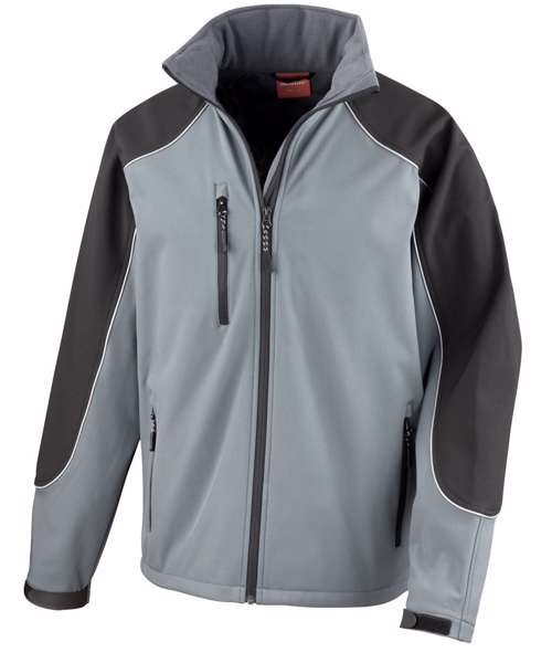 Water resistant seamless shoulders. Windproof. Result® 3 layer softshell technology. Breathable. Fully waterproof hood. Soft 2-way stretch fabric. Comfortable active cut. Concealed fully lined hood with tear release closing chin guard, wired visor and shockcord adjusters. YKK full front zip fastening. 2 mesh lined zip closing side pockets for extra venting, 1 mesh lined zip closing chest pocket for extra venting, 2 large inside pockets and 1 inside phone pocket. Easy open zip pullers. Adjustable shockcord hem. Tear release adjustable cuffs. Inner storm flap. 3M™ reflective safety piping to shoulders and sleeves. Zip opening underarm vents with mesh cover. Concealed access for print and embroidery. Waterproof fabric.Decoration Guidelines:Decorating methods: Embroidery. Decorators access point: Concealed left chest zip.