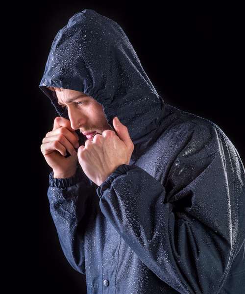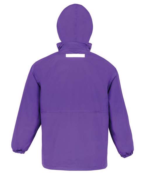 Reflective fabric outer hang loop. Heavy-duty full zip-through collar. Double-stitched taped seams. Stud closing outer storm flap. Concealed integral hood. Zip closing side pockets. Elasticated cuff. Stand-up collar. Inside pocket. Made with 100% recycled polyester.