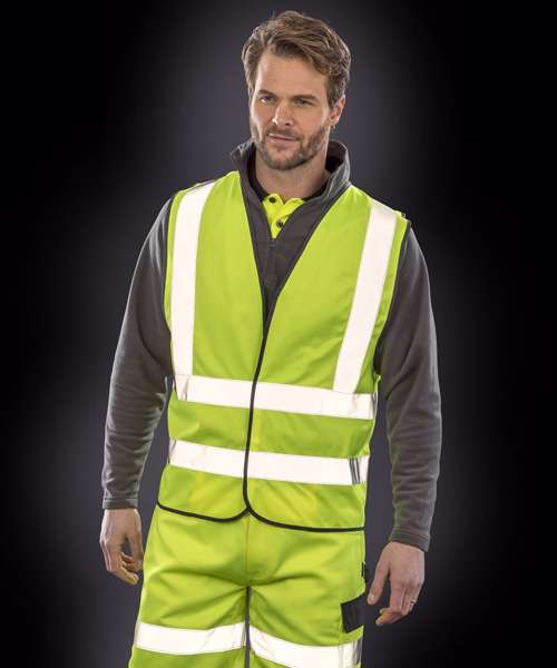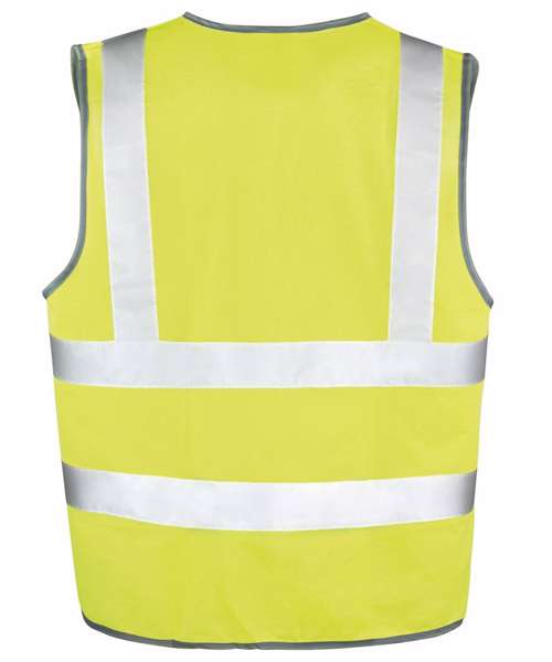 Safety shoulder braces and two body hoops. Generous in size - to be worn as an overgarment. Grey polyester bound edges. 50mm sewn-on safety tapes. Single, long, vertical tear release fastening. Note: These garments should be worn fastened and kept clean to maintain effectiveness. Conforms to EN ISO 20471 + A1:2016 CLASS 2. RIS-3279-TOM ISSUE 2:2019 CLASS 2 (orange only). Decorating methods: Direct print, transfer print, and embroidery.