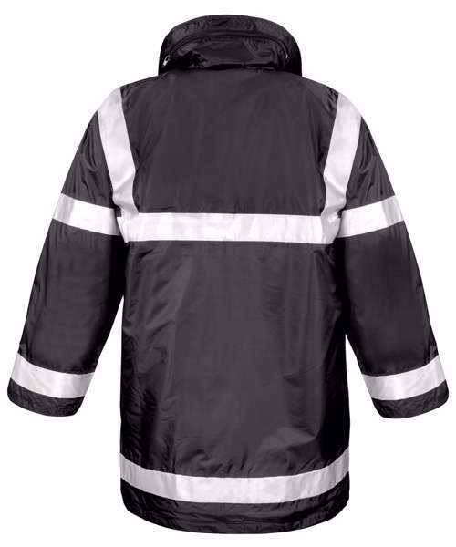 The perfect choice for a comfortable work day. The RE23A will provide safety, functionality and great weatherproof protection. A longer cut, taped seams, concealed hood and stud closing storm flap all add to the total comfort from this heavy duty hi-viz management coat.