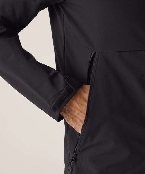 Innovative woven ultra stretch fabric with a DWR (Durable water-repellent) finish. Highly durable and resilient performance fabric, processed in an eco-friendly way. Clean, modern, lightweight design. 2 lower zipped pockets. Reflective details on the arms and CB hem. Grown on technical hood with concealed adjusters at the face. Adjustable Hem.