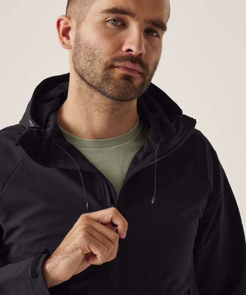 Innovative woven ultra stretch fabric with a DWR (Durable water-repellent) finish. Highly durable and resilient performance fabric, processed in an eco-friendly way. Clean, modern, lightweight design. 2 lower zipped pockets. Reflective details on the arms and CB hem. Grown on technical hood with concealed adjusters at the face. Adjustable Hem. .