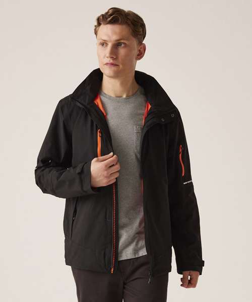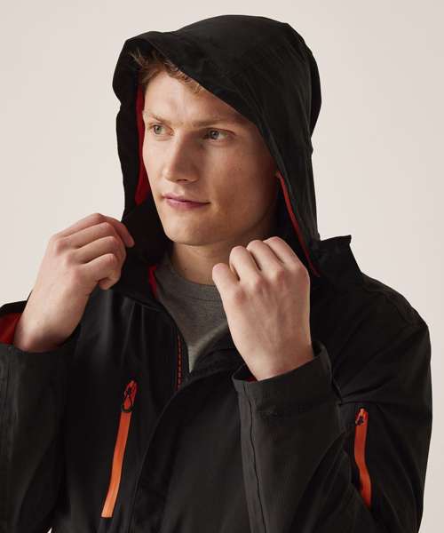 Waterproof and breathable Isotex 10,000 Stretch Ripstop fabric, conforms to EN343 3:2, sealed seams and a DWR (Durable water-repellent) finish for all-weather protection. Thermo-reflect lining panel for heat retention. RFID protection pocket for added security. Packaway hood that conceals away into collar, 2 zipped lower pockets, 1 waterproof zipped sleeve pocket and 1 zipped waterproof chest pocket. Storm flap covered CF zip. Concealed zip in lining for embroidery access, and shock cord adjusters at hem. Reflective details on sleeves and back. .