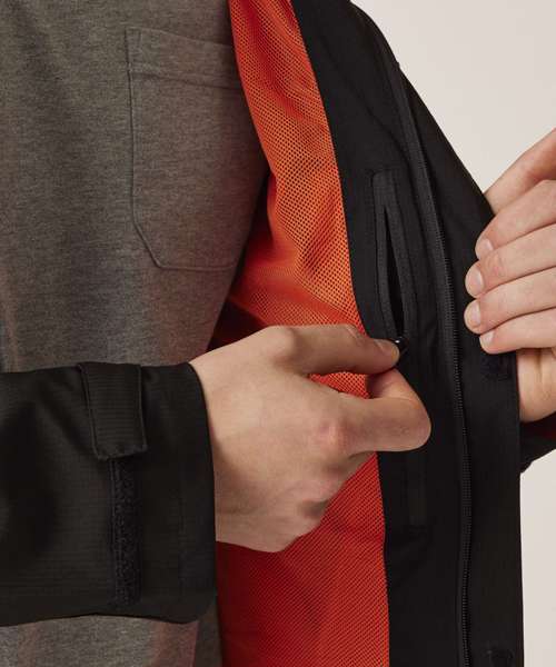 Stay protected in the Exosphere. The men's waterproof coat is crafted with a breathable fabric to keep you warm and sealed seams for extra protection. Thermo-reflect lining reflects heat back into you to keep you warm and RFID-lined pockets help prevent digital theft. Tailor the men's winter jacket to you with the shock cord adjusters.