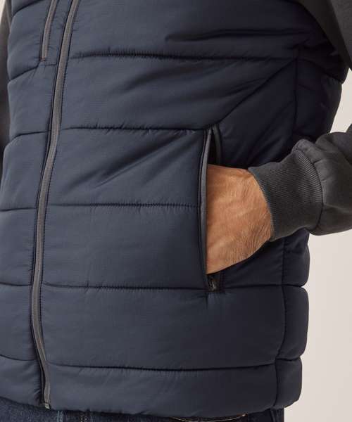 100% polyester ripstop fabric with recycled polyester high warmth padding. Warmloft performance technology insulation. Multiple pockets including two zipped lower pockets, one chest pocket and one inner pocket.
