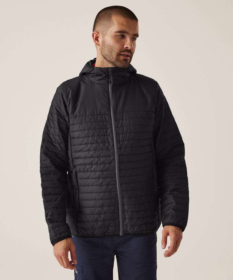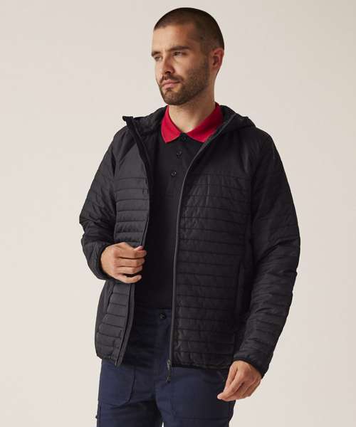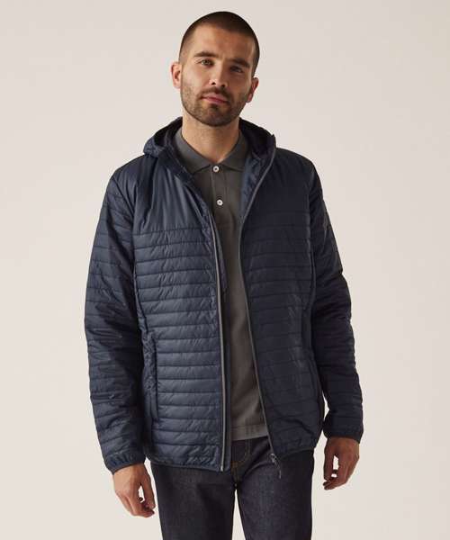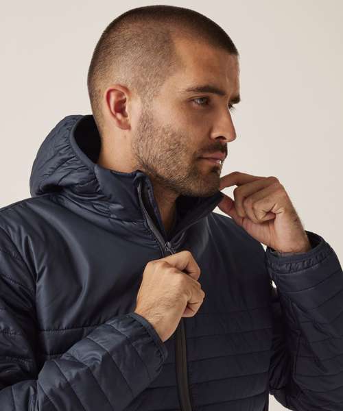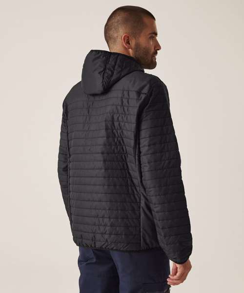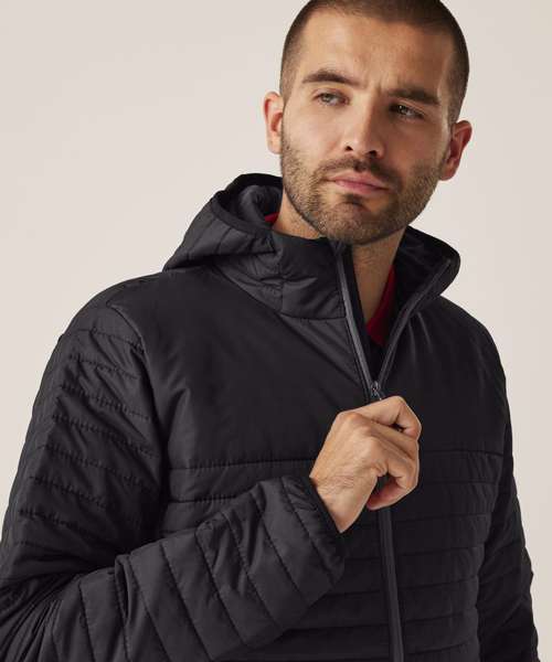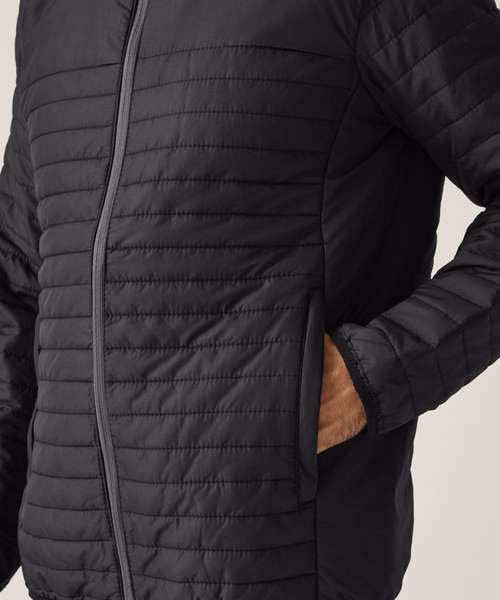 100% Recycled polyester interest face fabric with water-repellent cire finish. Recycled Thermoguard 180gsm insulation, and recycled polyester lining. Stretch binding to cuffs, hood and hem. 2 zipped lower pockets. Easily compressible.