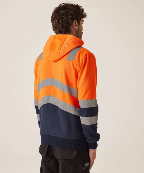 Stay visible in this hi-vis hoodie, made with a polycotton blend for comfort and durability. Pop on the hood for extra protection. Angled hi-vis chevrons show which way you’re facing in low light. Conforms to EN ISO 20471:2013 +A1:2016 Class 2.