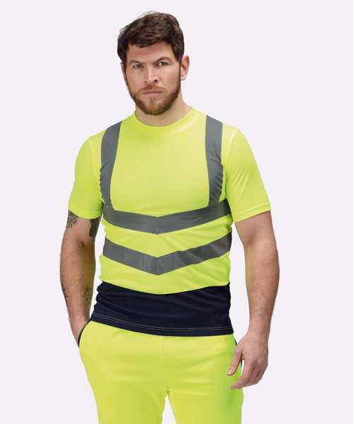 Stay visible in low light in the hi-vis t-shirt. Made with quick-drying fabric, it offers great moisture-wicking performance to keep you fresh. Angled hi-vis chevrons show which way you’re facing in low light. Conforms to EN ISO 20471:2013 +A1:2016 Class 2.