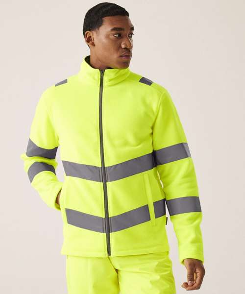 280 series anti-pill Symmetry fleece. Certified to EN ISO 20471:2013 A1:2016 Class 3. Orange colourway also conforms to RIS-3279-TOM. Two zipped lower pockets. Made with recycled content. ID Reflection – angled chevrons inform whether you are facing forwards or away.