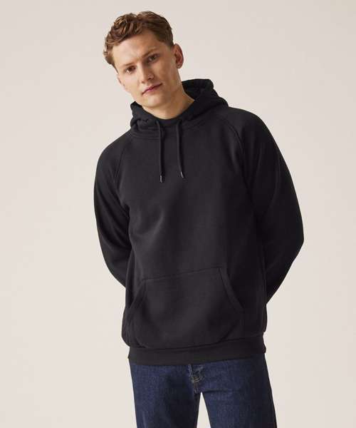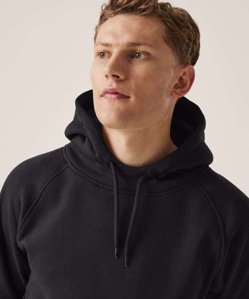 35% sustainable cotton and 65% polyester brushed back fabric. Grown-on hood with drawcords. Ribbed cuffs and hem.