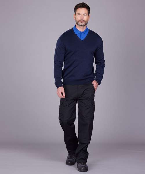 The Pro sweater is a staple workwear item. Designed with a v-neck and set-in-sleeve and finished with knitted saddle shoulders for extra durability, it's smart style makes it extremely versatile for all workwear needs.