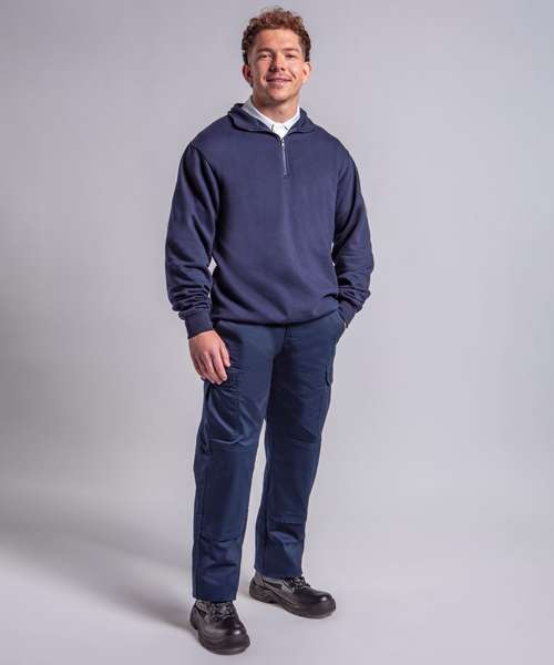 This classic garment delivers comfort without compromising on style. Update your uniform with this key workwear style built for style and durability. Created with 300gsm polycotton fleece fabric, with twin-needle stitching, this sturdy garment will see you through any work environment.
