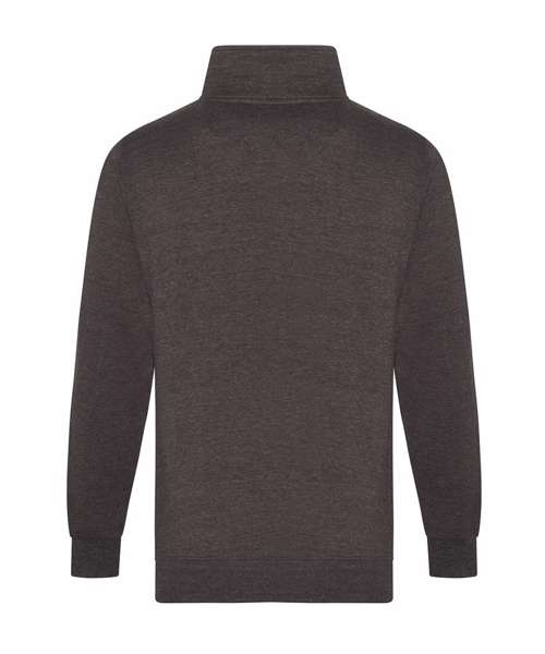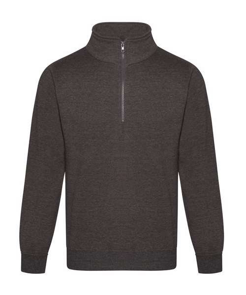 YKK zip and pull. Twin-needle stitching at arm, cuff and hem. 2x1 rib on cuff and hem. Heavier-weight fabric. Modern yet comfortable fit. Half-zip neck. Brushed inner fleece.