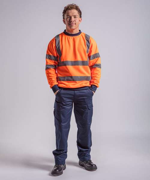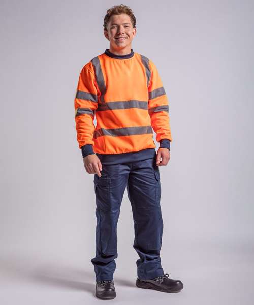 Warm, comfortable and timeless, the high visibility sweatshirt provides level 3 protection. Made from 100% polyester with contrast collar, hem and cuff providing, protection from dirt in those most prone areas, this staple workwear item will see you through any season.