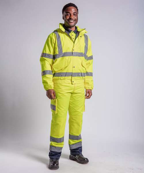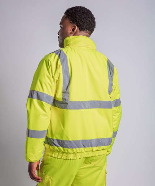 A classic workwear essential, this high visibility bomber jacket is an ideal layer that is functional and warm for kitting out the workforce in colder weather. Zipped front with studded storm flaps for added warmth in more extreme conditions.