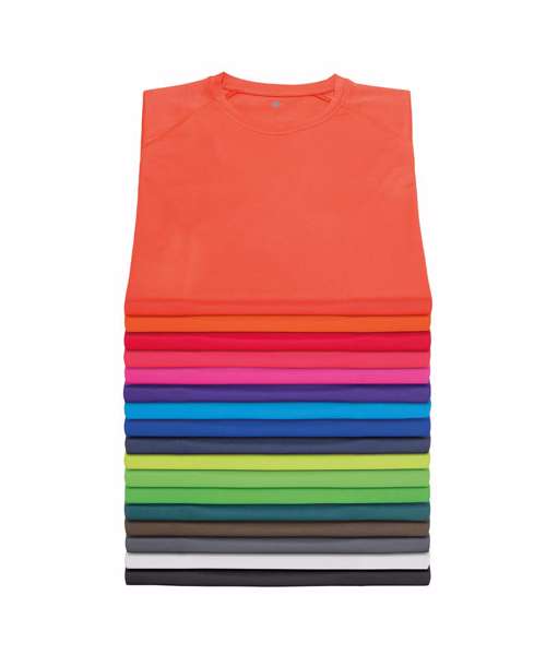 Breathable. Quick-dry. Tag free. Hi-colour range. Ideal for water based inks. Feather weight with enhanced drape & feel. High tec stretch with brilliant shape retention. Quick-dry piquet knit fabric for easy breathability. Full fit for comfort wear. Top stitched shoulder and sleeve detail.