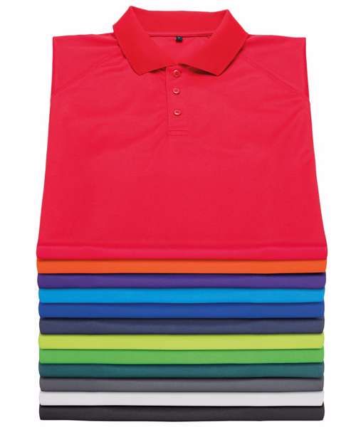 Tag free. Wide colour range. Full fit for comfort wear. Ideal for water based inks. Feather weight with enhanced drape and feel. Packed in Quick Print decorators bundles. High Tec stretch with brilliant shape retention. Quick-dry piqué knit fabric for easy breathability. Ribbed collar. 3-button placket with spare. Top stitched shoulder and sleeve detail.
