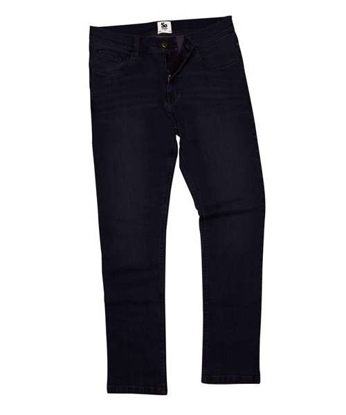 Straight fit, stretch denim, 5 pocket styling, light blasting and whiskering, self-fabric belt loops, shank button and YKK zip fly fastening, metal rivet detail at pocket corners, twin needle stitching detail.