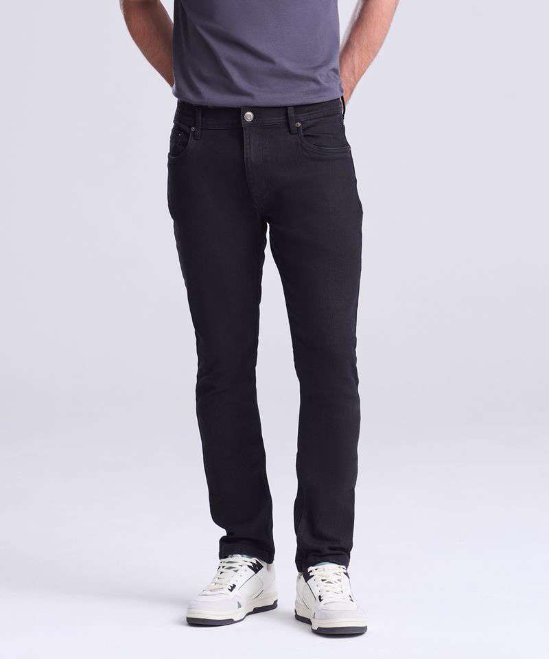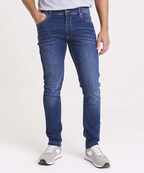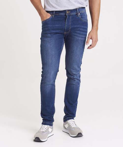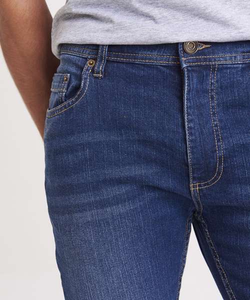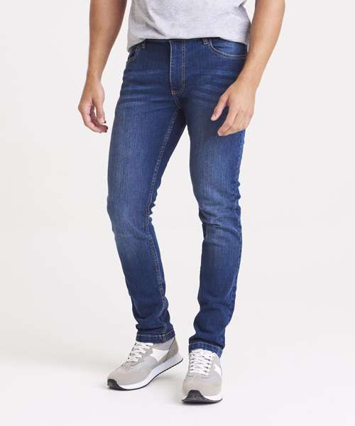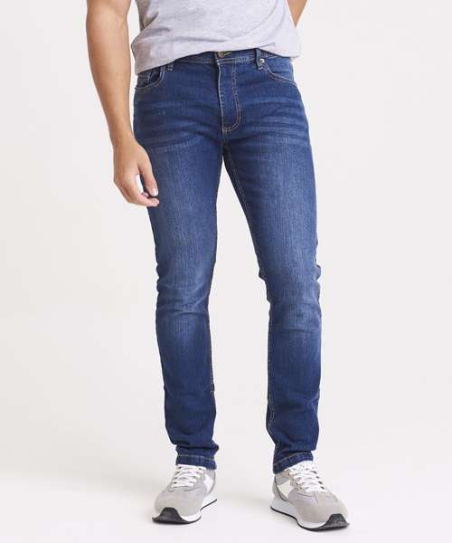 Slim fit. Stretch denim. 5 pocket styling. Light blasting & whiskering (blue washes only). Self-fabric belt loops. Shank button and YKK zip fly fastening. Metal rivet detail at pocket corners. Twin needle stitching detail.