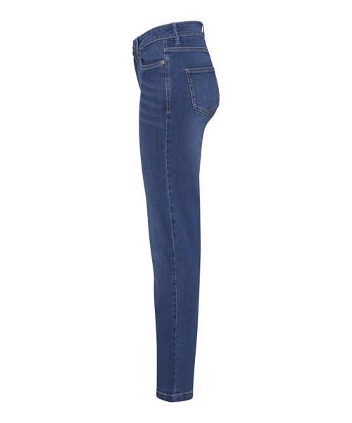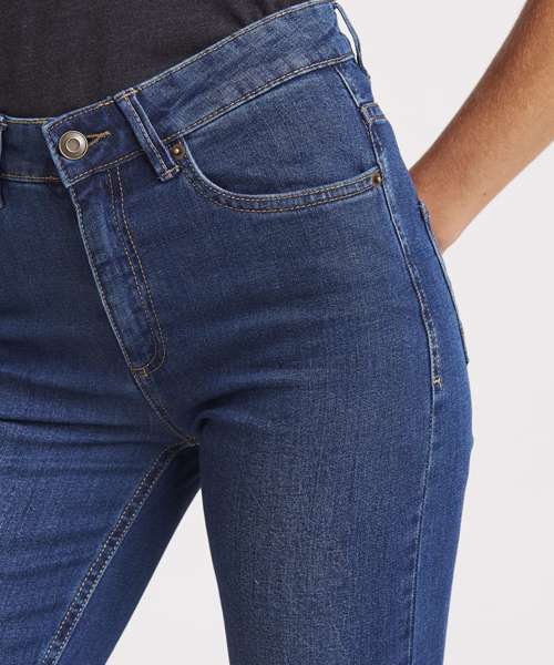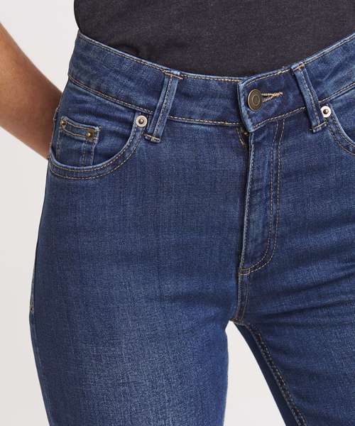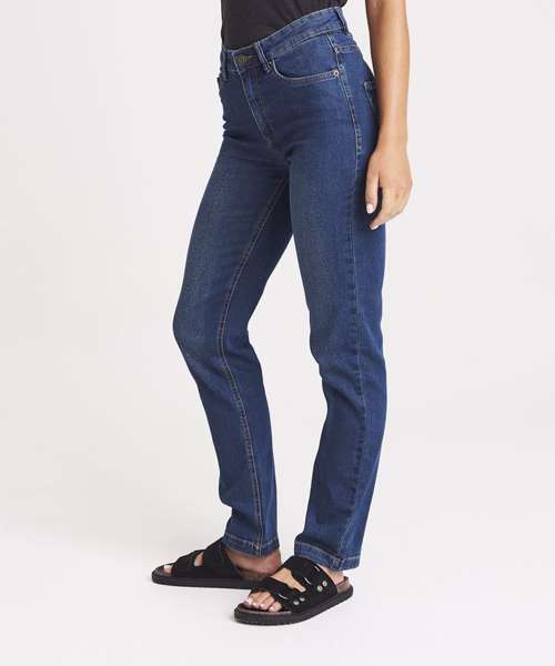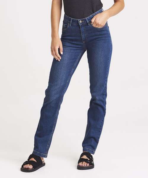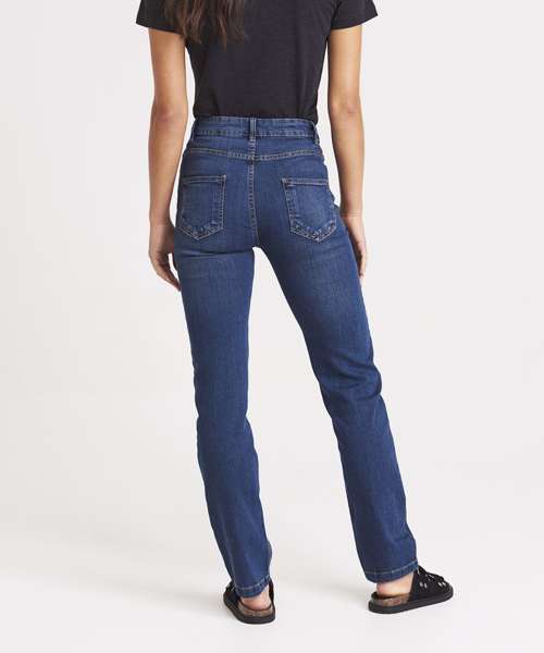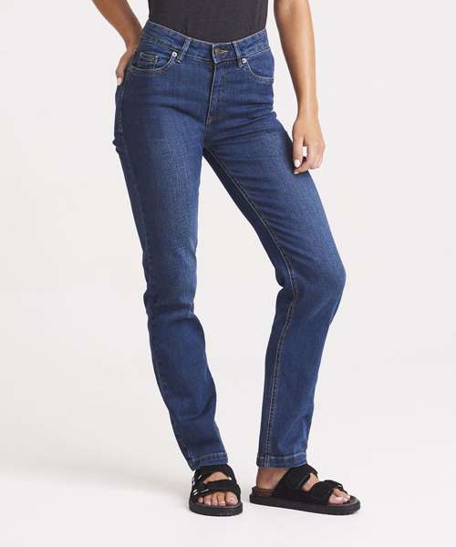 Straight fit. Stretch denim. 5 pocket styling. Light blasting and whiskering (blue washes only). Self-fabric belt loops. Shank button and YKK zip fly fastening. Metal rivet detail at pocket corners. Twin needle stitching detail.