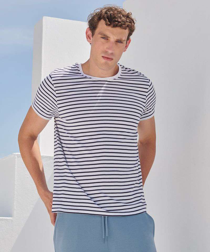 You can't go wrong with stripes. Fun. Impactful. A modern classic. Made with quality striped cotton Jersey, this soft-touch unisex striped T has a regular body fit to suit all shapes. The stretch rib neck and back neck tape ensure a premium finish. The tear-out label can be removed for rebranding.