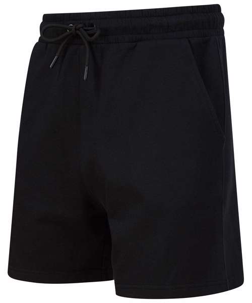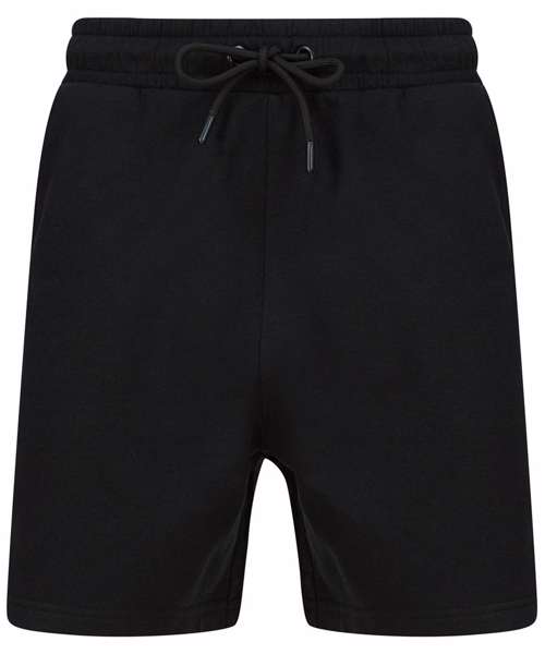 Unisex sweat shorts. Elasticated waist. Round cord drawcord. Curved front side pockets. Back patch pocket. Straight hem with twin-needle stitching. Brand-free, for easy rebranding. Contains recycled cotton and recycled polyester.