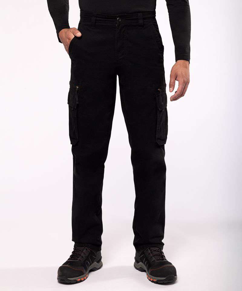 100% cotton. Zip and button fastening. 2 side pockets. 2 zipped piped pockets. 2 bellows pockets with tear release flap fastening. 2 rear patch pockets with tear release fastening. This product has been specially treated and appears intentionally aged. This manufacturing process results in colour variations between products and makes each piece unique.