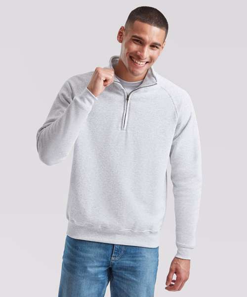 Available in a selection of colours with a covered metal zip for enhanced printability, the classic zip neck sweat is ideal for all kinds of garment decoration. Details include a single Jersey back neck tape for comfort and cotton/Lycra® waist and cuff ribs and a cadet collar for added warmth.