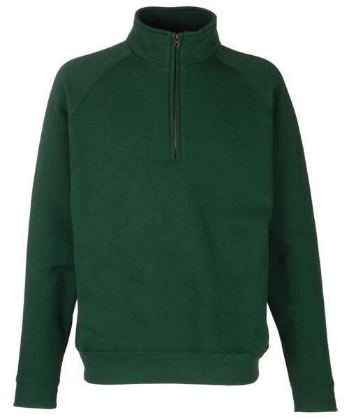 Available in a selection of colours with a covered metal zip for enhanced printability, Fruit’s Premium zip neck sweat is ideal for all kinds of garment decoration. Details include a single Jersey back neck tape for comfort and cotton/elastane waist and cuff ribs and a cadet collar for added warmth.
