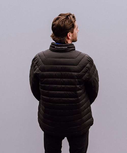 Stormtech DWR durable water-repellent outer shell. Stormtech thermal shell insulated. Articulated sleeves. Brushed Tricot hand warmer pockets. Full length inner storm flap. Embroidery access.