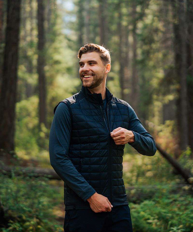 Flexible, versatile, thermal efficiency. The Appalachian thermal softshell vest is ideally suited for all-season use, with a lightweight quilted Thermolex™ body and four-way stretch softshell panels. The durable water-repellent finish fabric on the main body helps to repel water in damp conditions, while the brushed tricot internal storm flap and adjustable hem with drawcord allow adjustment for maximum comfort. Built with recycled polyester and polyester fabric with 10% spandex to provide stretch mobility.