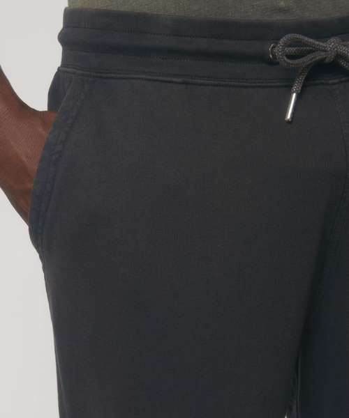 1x1 rib waistband and leg opening. Round drawcords in matching body colour with metal tipping and metal eyelets. Pocket lining in single Jersey. Patch pocket at back. Terry fabric, 300gsm. This product has an aged garment dye which gives vintage look on the seems and fabric surface. Each garment may vary in appearance. Colours might bleed, please follow our care label.