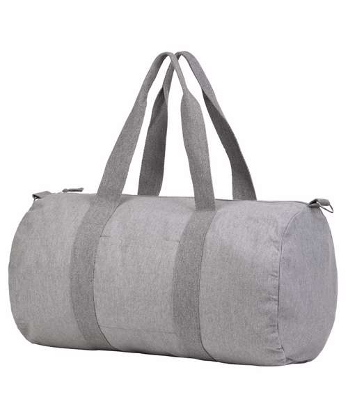 Lightweight duffle bag made with super-soft 100% recycled polyester. The bag is fully lined. It has an inside zip pocket, outside pocket and detachable adjustable shoulder straps.