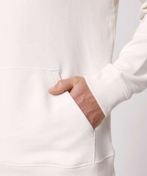 The unisex medium fit recycled hoodie sweatshirt is made from in-house organic cutting waste. Includes double-layered hood in self-fabric, and round drawcords in matching body colour with metal tipping.